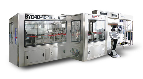 SYD series three in one water filling machine is a combination of bottle washing, filling and capping. Based on foreign advanced technology, and according to the filling process requirements of different drinks, it can simultaneously satisfy the normal temperature filling and hot filling, and also has CIP cleaning function. This series have the domestic advanced level of filling equipment.